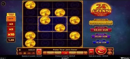 24 Coins es una slot con un RTP del 96.15%, uno de sus principales alicientes. Pero eso no es todo, porque tienes la posibilidad de conseguir uno de sus cuatro jackpots, que culminan con el Grand Jackpot, que multiplicaría por 1.200 el valor de tu apuesta.